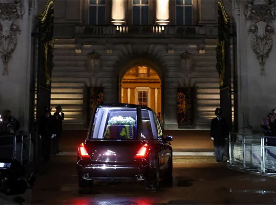 Já em Londres, quando o carro entrou pelos portões do palácio, os batedores da polícia, de moto, inclinaram a cabeça em reverência.