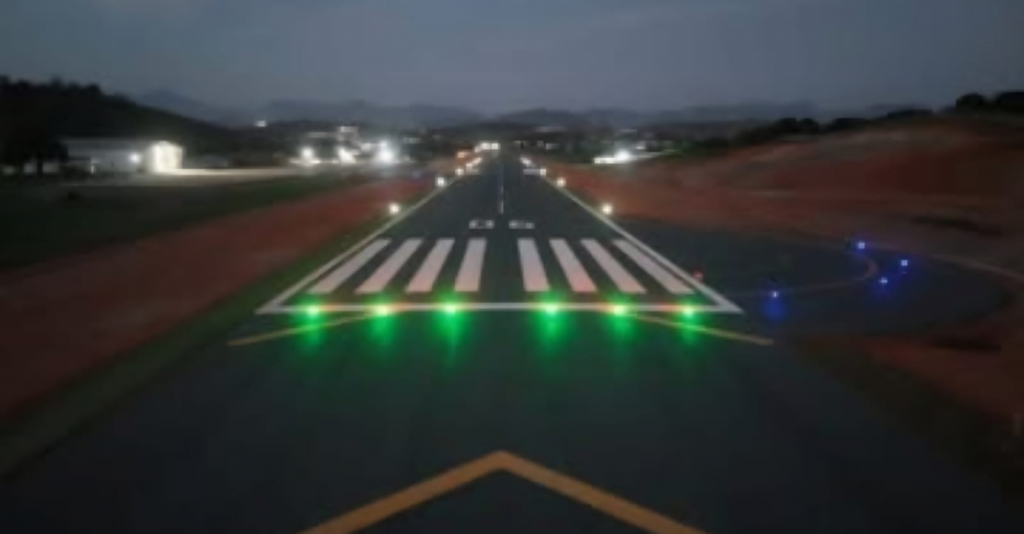 Pista de pouso e decolagem com 1.200 metros de comprimento por 30 metros de largura, novo terminal de passageiros, pátio expandido e sinalização moderna.