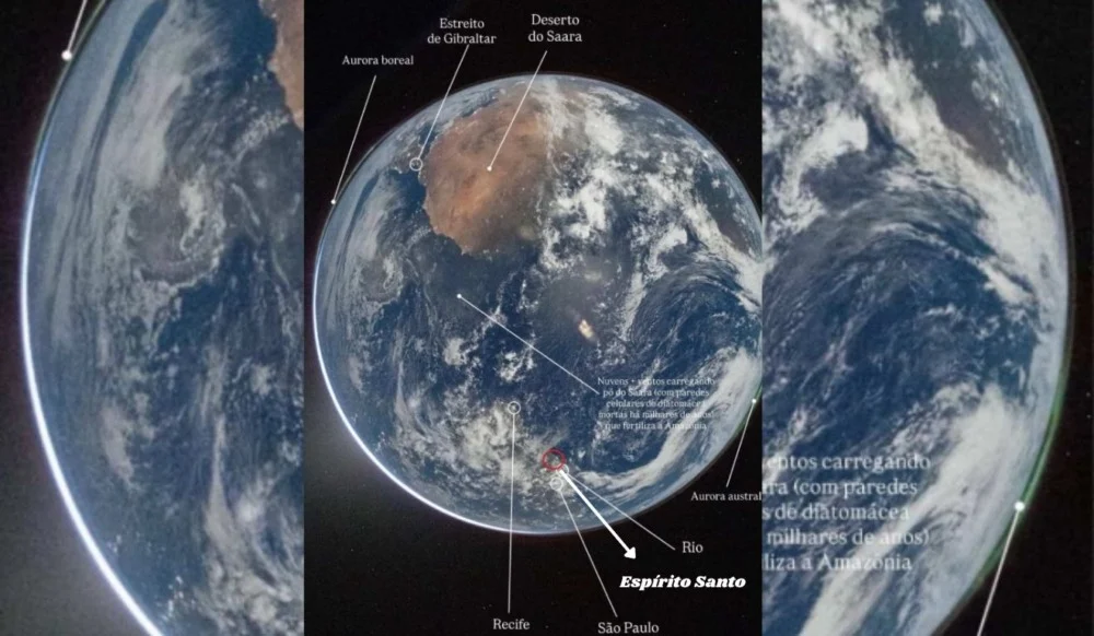 A identificação de onde estaria o estado capixaba na foto dos astronautas foi feita a pedido do Folha Vitória para a astrofísica Thaisa Storchi Bergmann, que é da Universidade Federal do Rio Grande do Sul (UFRGS) e pós-doutora na Universidade de Maryland.