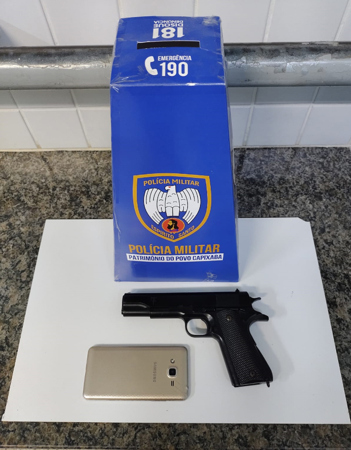Durante a noite, por volta das 22h, um indivíduo foi detido em posse de um simulacro de arma de fogo. A ação ocorreu no bairro Adalberto Simão Nader enquanto os militares estavam atendendo uma solicitação de ameaça. (Imagem 02)