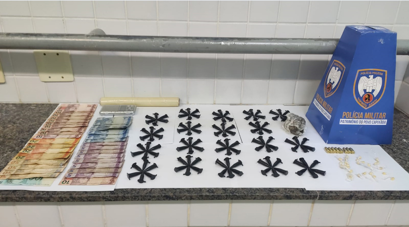 Na sexta (20) durante patrulhamento no Bairro Perocão uma guarnição da polícia militar abordou e apreendeu com indivíduos 114 pinos de cocaína, 26 pedras de crack, 01 porção pequena de maconha, 01 balança de precisão, R$ 544,00 reais em espécie e 08 munições de calibre .380 intactas. Diante dos fatos o material apreendido e os envolvidos foram encaminhados a 5ª Delegacia regional de Guarapari.