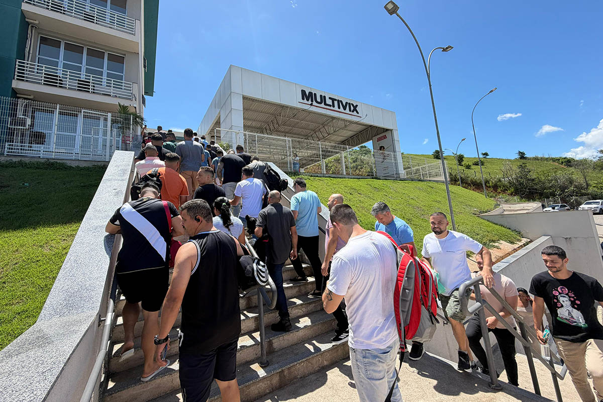 Mesmo o calor de quase 30 graus em Cachoeiro não desanimou candidatos como o vigilante Breno Sella. Ele foi o primeiro a entrar no campus da Faculdade Multivix do bairro Monte Belo, às 13 horas, e falou que chegar cedo ajuda a enfrentar a adrenalina do dia de prova. “Para chegar na sala e ficar tranquilo, porque a ansiedade bate forte. Depois que você entra, já melhora”.