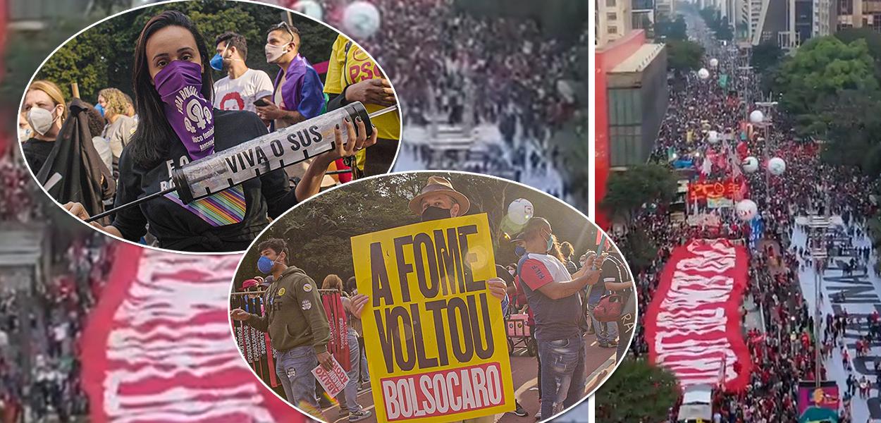 A Avenida Paulista, em São Paulo, um termômetro histórico do que acontece no país quando o assunto é mobilização popular, teve vários quarteirões ocupados por manifestantes pedindo o "Fora Bolsonaro".
