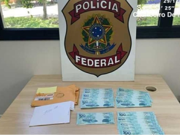 Ao receber a encomenda, policiais federais da Delegacia da cidade deram o flagrante e encontraram dentro do envelope várias cédulas falsas de R$ 100, perfazendoum total de R$ 2 mil.