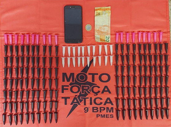 No centro de Vargem Alta, em outra ocorrência, um homem foi detido com quatro pinos de cocaína e 14 pedras de crack.