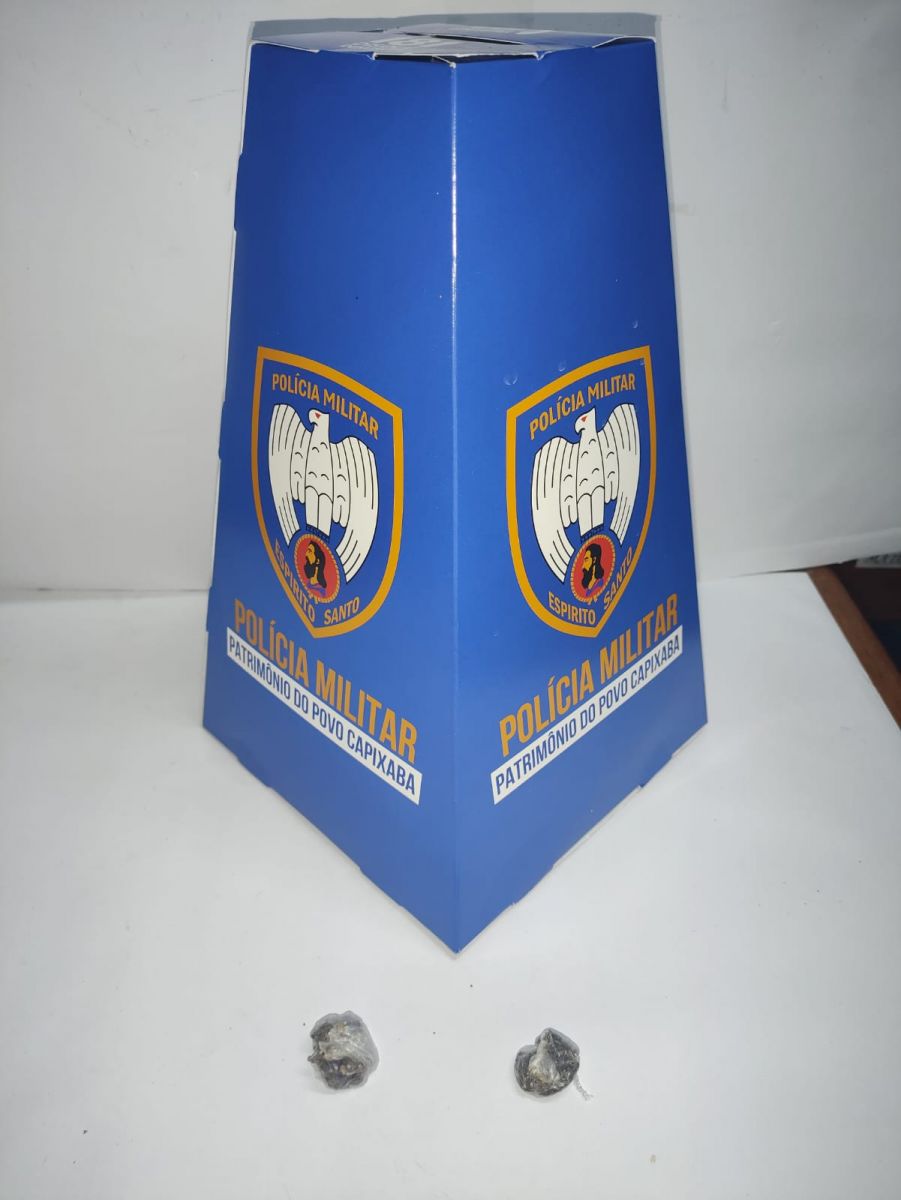 Na checagem inicial, nada foi encontrado. Porém, ao observarem o local, viram uma pequena bucha de maconha próxima a um dos indivíduos. Após uma busca no local, próximo a uma vegetação, encontraram outra bucha da mesma substância.