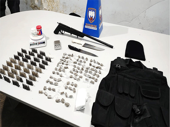 Na noite dessa quinta-feira (20), Durante patrulhamento pelo bairro Adalberto Simão Nader, equipes de policiais militares receberam denúncia de anônimos de que teria uma casa abandonada sendo usada por traficantes da região. No local, foram encontrados 03 balanças de precisão, 170 pinos de cocaína, 01 porção de cocaína, 88 buchas de maconha, 02 facas para corte das drogas, 01 pote contendo acido bórico, 01 toca ninja, 01 capa de colete preto e 01 rifle de caça calibre indefinido de fabricação artesanal. Todo material foi apreendido e encaminhado a 5ª Delegacia regional de Guarapari.