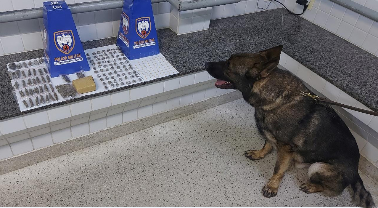 Na parte da tarde, no bairro Kubitschek militares no patrulhamento tático junto com a equipe do K-9 abordaram alguns indivíduos em atitude suspeita em um local conhecido pelo intenso comércio de entorpecentes, porém nada de ilícito foi encontrado sendo então liberados. Os policiais permaneceram realizando buscas no local, e com o emprego do cão Mike lograram êxito em localizar: 36 tiras de maconha, um pedaço médio e um pedaço grande da mesma substância. No deslocamento para a 5ª delegacia regional de Guarapari, ao passar no bairro Ipiranga, na região conhecida como “matinha”, dois indivíduos empreenderam fuga e não foram alcançados. Novamente foi empregado o cão Mike que localizou: 88 pedras de crack e 70 buchas de maconha.