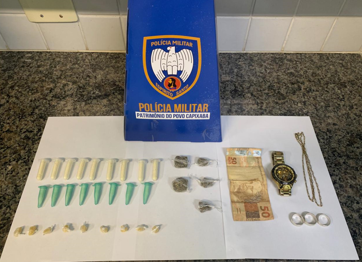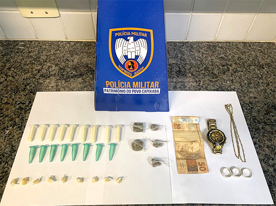 Na noite desta quarta (28) durante patrulhamento no bairro Santa Mônica, policiais militares abordaram dois indivíduos e ao realizar busca pessoal em ambos, foram localizados uma quantia de R$50,00 reais em espécie, além de 17 pinos de cocaína, 09 pedras de crack e 05 buchas de maconha. Diante dos fatos e material encontrado, os indivíduos e o material foram conduzidos a 5ª Delegacia Regional de Guarapari.