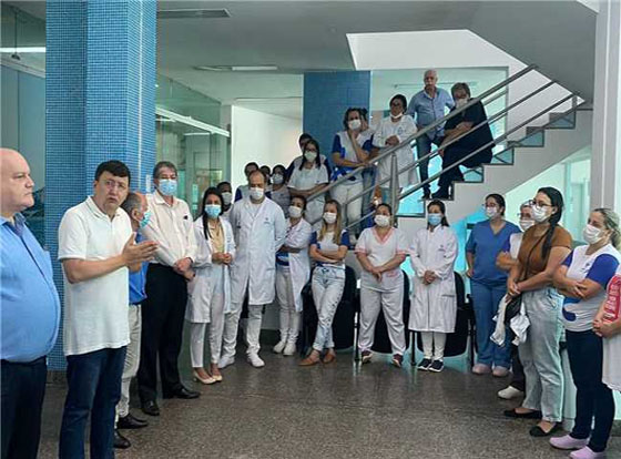 A improvisada reunião convocada pelo prefeito aconteceu com a presença de funcionários e pela direção da Santa Casa, responsável pela administração do Hospital e Maternidade Menino Jesus.