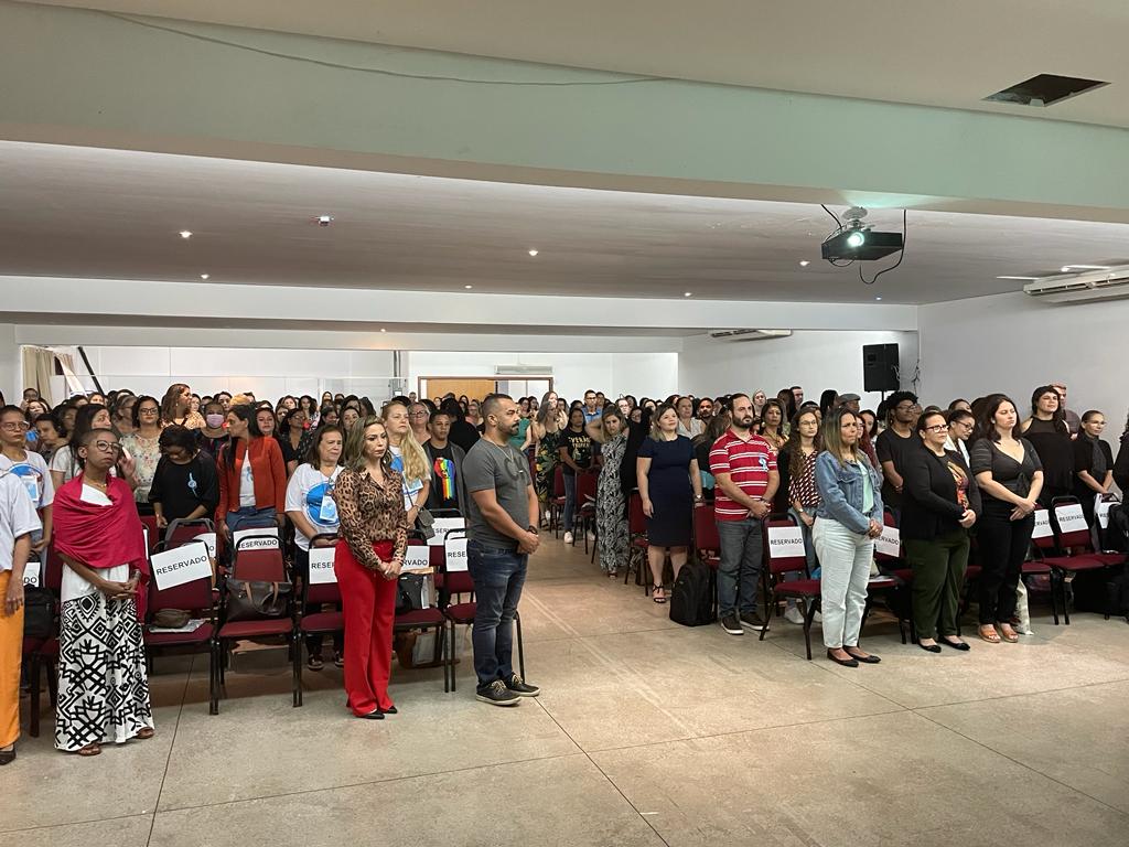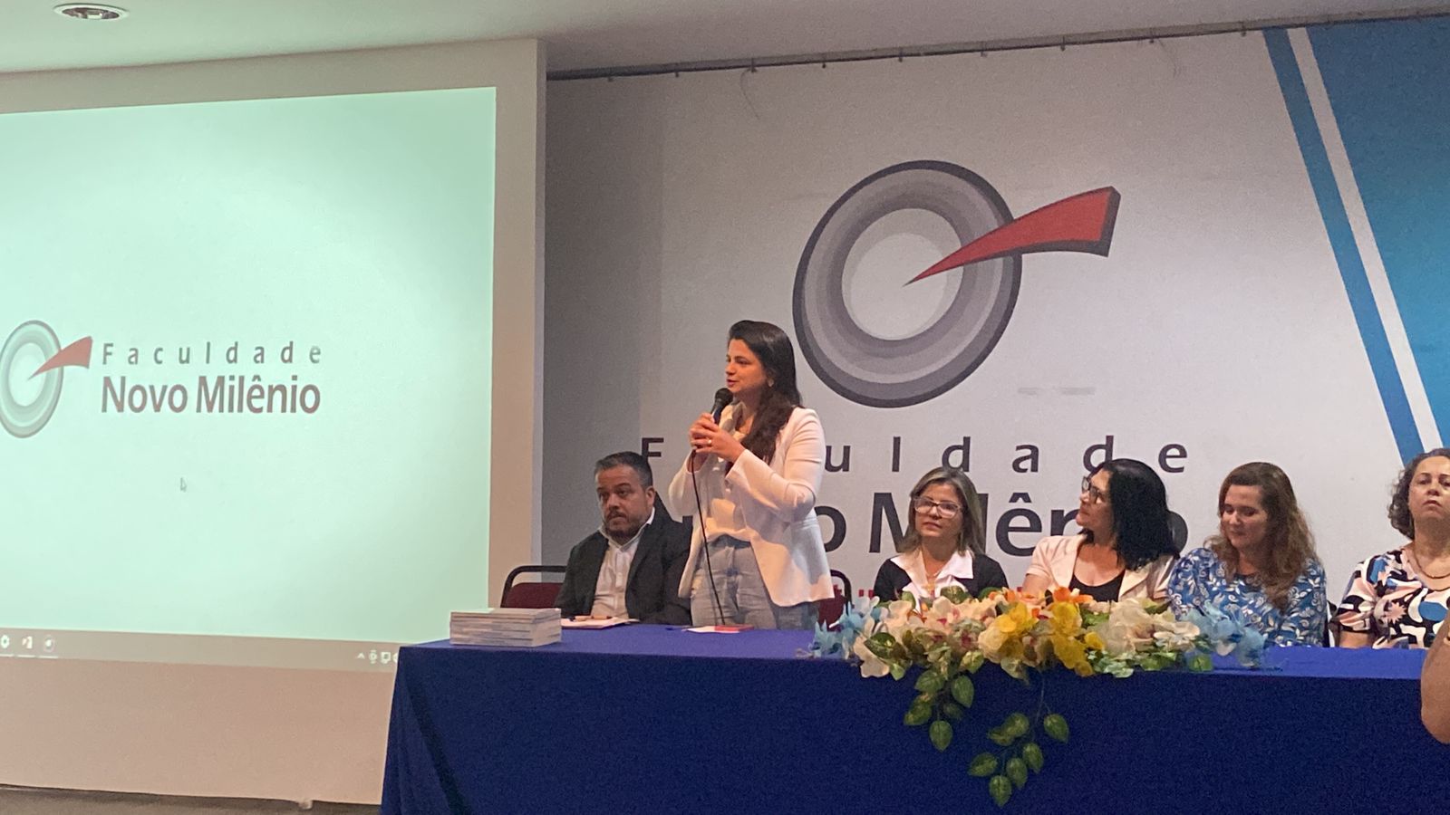 Durante a manhã, a professora Dra. Mariangela Lima de Almeida, da Ufes, abordou o tema sobre a construção colaborativa entre gestores de Educação Especial e pesquisadores da Universidade, enfatizando a importância dos estudos na perspectiva inclusiva.