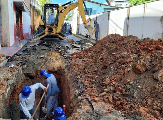 Rua do Centro fica interditada para reparos na rede de drenagem