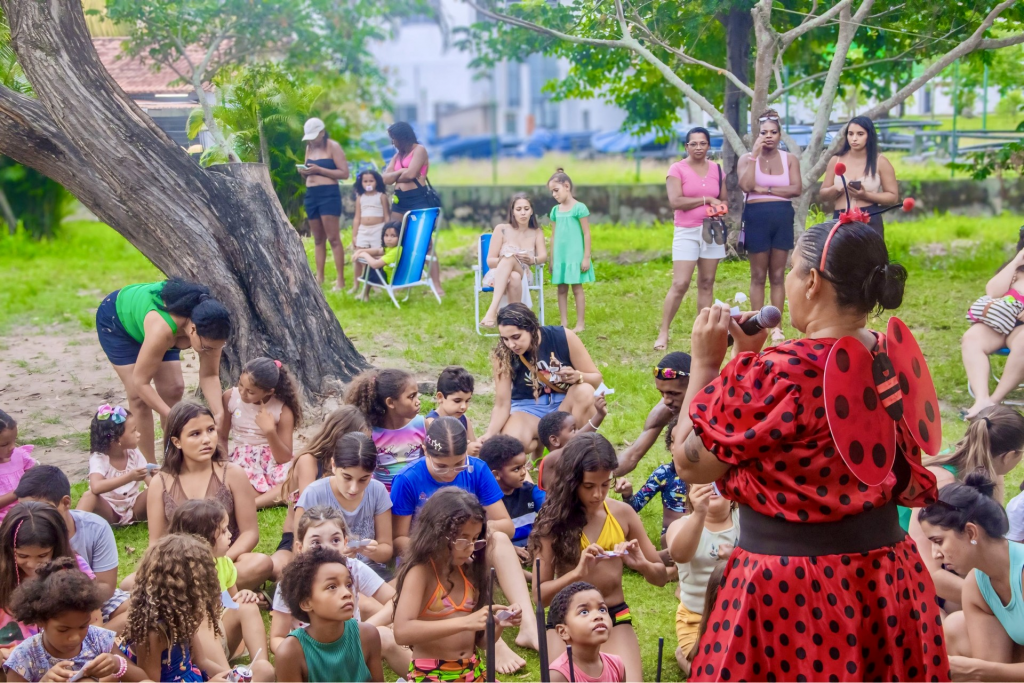 A programação contou com recreação com Marshmallow, contação de histórias com Fabiani Taylor e apresentação do grupo Cantarolada, envolvendo o público infantil com música, ludicidade e interação, em uma experiência que valorizou a imaginação, a alegria e o brincar.