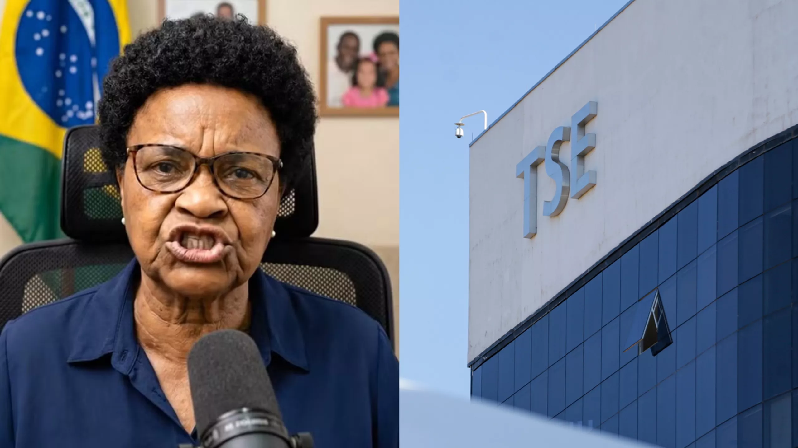 “Dona Maria”, personagem criada por inteligência artificial, e prédio do TSE (Foto: Reprodução | Marcelo Camargo/Agência Brasil)